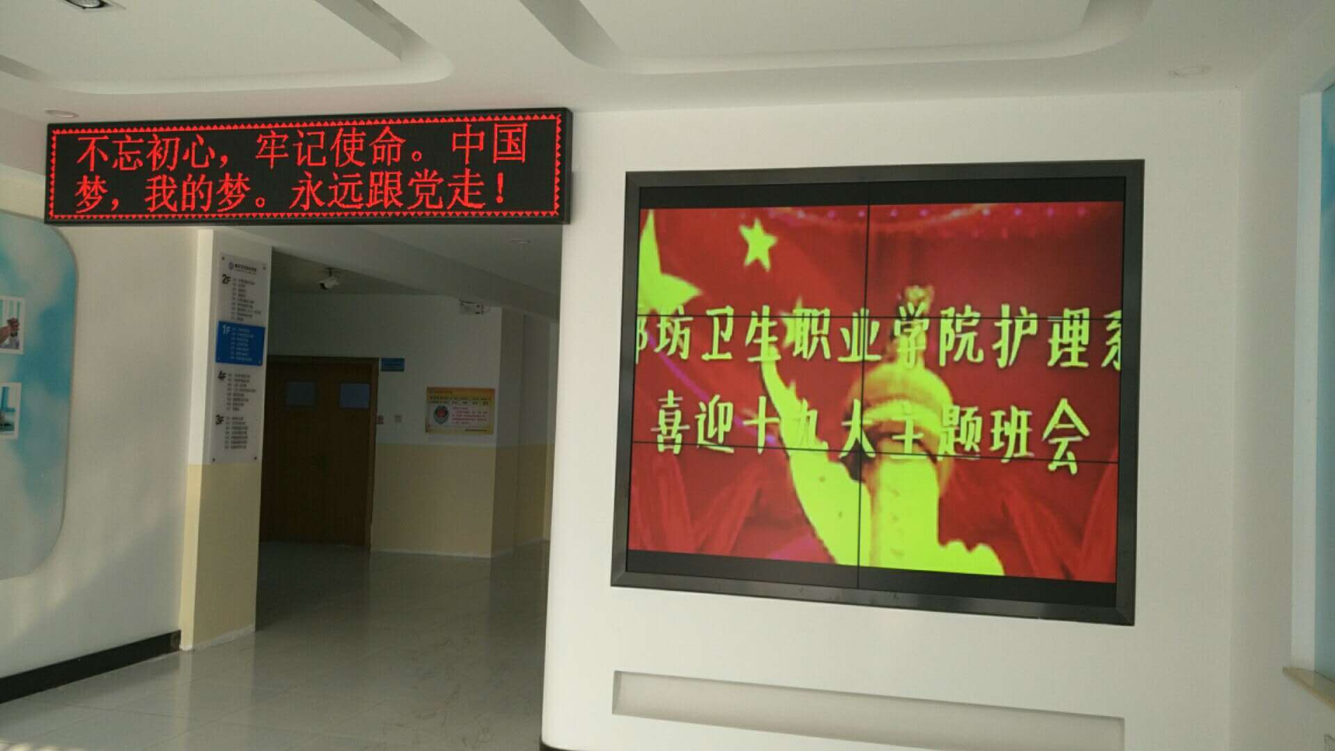 根据学院党委《中共廊坊卫生职业学院委员会关于印发<关于认真学习宣传贯彻党的十九大精神的实施方案>的通知》的文件精神,护理系党总支周密部署,组织安排了各种活动学习宣传党的十九大精神,广泛地运用了多种宣传方式,充分采用了学生和教职工喜闻乐见的形式, 如在护理系公众号推送十九大精神宣传稿件进行网络主题宣传;制作党的十九大精神专题字幕、专题宣传栏;在护理系实验楼横屏播放专题字幕,在大屏幕播放学生学习十九大精神主题班会PPT等,这些宣传形式浓厚了宣传氛围,进一步推动了十九大精神深入人心。