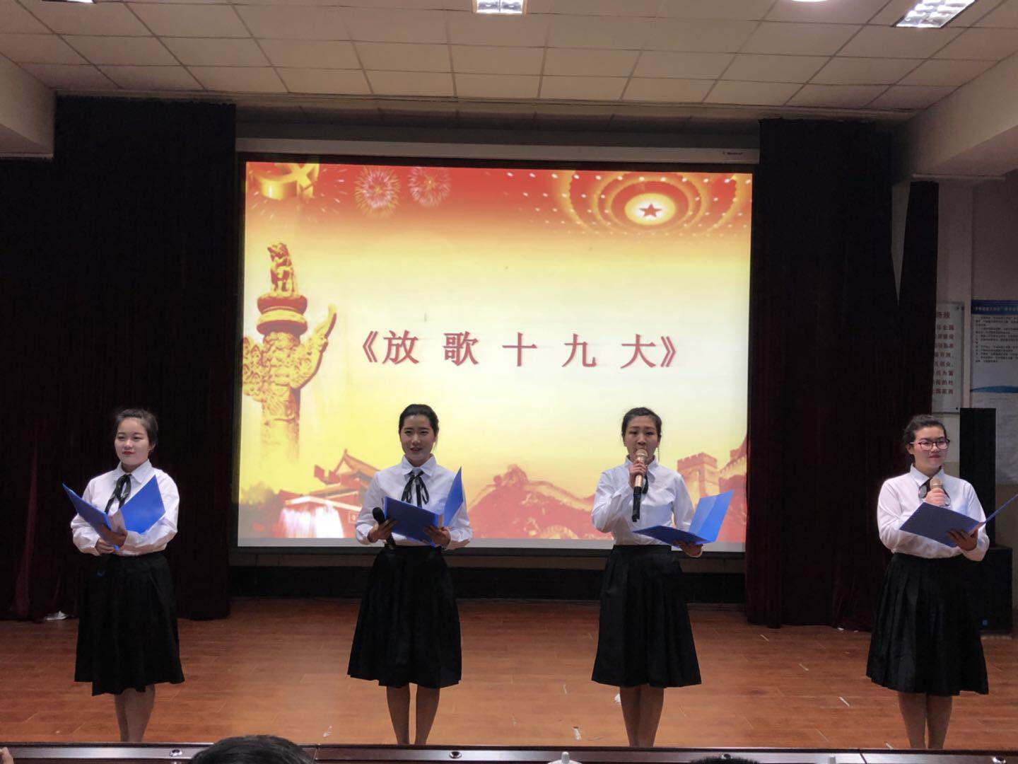 此次演出以护理系天使志愿者服务队开场。护理系天使志愿服务队在 2016年正式成立, 是一支具有青春活力、朝气蓬勃、奉献爱心的青年志愿者队伍。这支年轻的队伍在护理系学工科的领导下,时刻秉承和发扬青年志愿者“团结、友爱、互助、进步”的志愿者精神,大力开展各种志愿服务活动,受到了观众的广泛赞扬,党委副书记王立志、党委委员彭丽华、党委委员纪检书记仝玲为优秀志愿者颁发荣誉证书,节目汇演由此拉开了序幕。整场演出的节目每个都别出心裁,精彩绝伦。有青春的旋律,诗意的飞扬,思想的翱翔,情感的抒发。护理系合唱队的同学们带来的《在路上》、《堂堂正正一辈子》;满怀激情的朗诵《放歌十九大》;充满创新的《三句半》等节目,无一不展现着同学们的才华与激情。演出以 dreamer乐队的《成都》完美收官, 全场14个节目受到了领导、老师和同学们的一致好评。