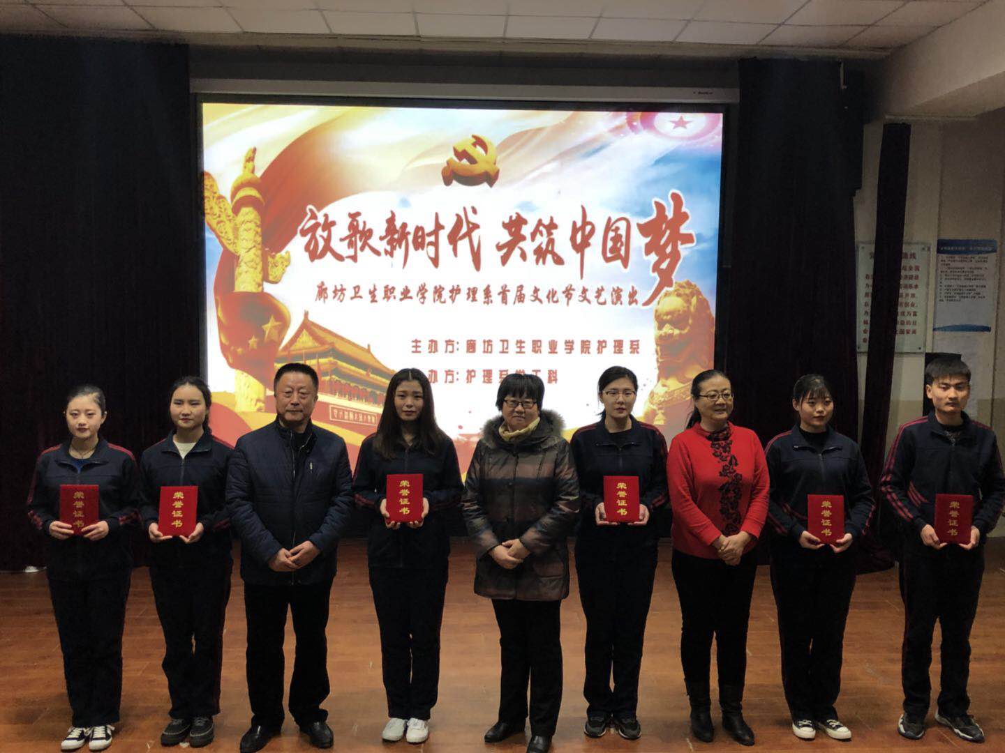 2017年 12月 14日下午 3点,护理系学工科在学术报告厅举了办以“放歌新时代,共筑中国梦”为主题的护理系文化节汇报演出。出席本次活动的领导有党委副书记王立志、党委委员彭丽红、党委委员纪检书记仝玲及学院各处室领导。