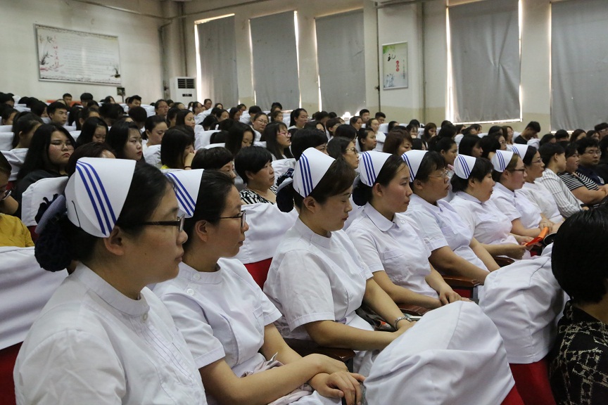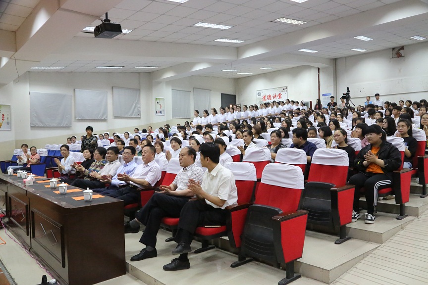 5月10日下午,护理系在学院学术报告厅举行以“展礼仪风采、秀天使之姿”为主题的5·12国际护士节庆祝大会。学院党委书记郝锁来、院长刘更新、副书记王立志、副院长彭丽红、副院长孙爱国、副院长金贵婷出席庆祝活动,学院部分中层处室领导到会祝贺,护理系全体教师、400余名学生代表参加了活动。