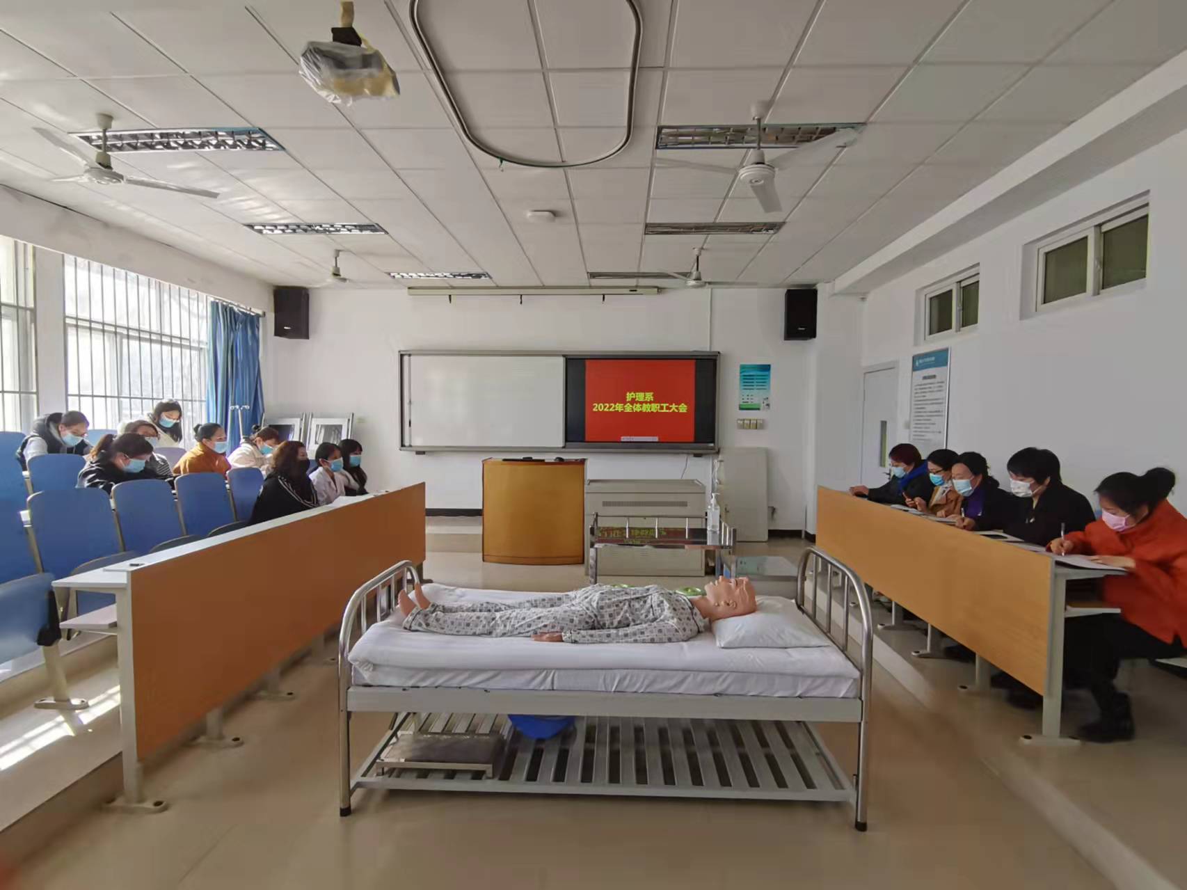 3月3日下午2点,护理系在护理实验¥示教室一召开了新学期教职工大会,此次会议对本学期护理系工作进行了部署。