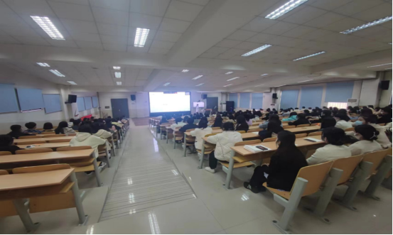 为巩固疫情防控成果,讲座采取了线上线下相结合的方式,线下会场设置在了阶梯教室,线上会场设置在各班教室观看钉钉直播,实现了线上线下全员覆盖。