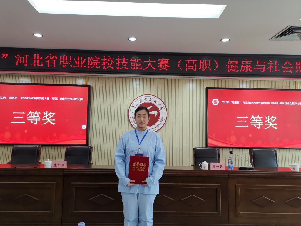 2023年3月25~26日,护理系教学科长陈亚清和辅导教师王凤莲、张志英带领白欣怡、贾星月2名选手参加了唐山职业技术学院承办的2022年河北省健康与社会照护省赛,白欣怡同学荣获比赛三等奖。