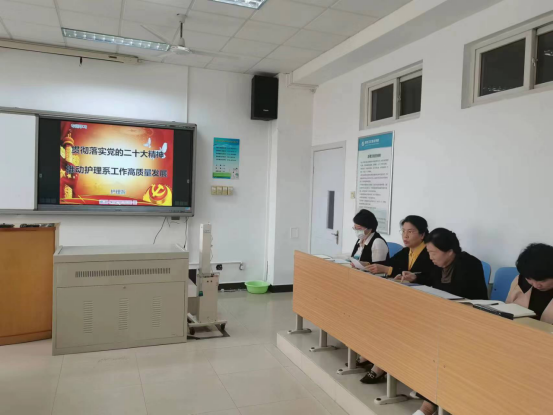 2023年4月13日下午,护理系全体教职员工在护理示教室开展了“贯彻落实党的二十大精神”的学习活动。