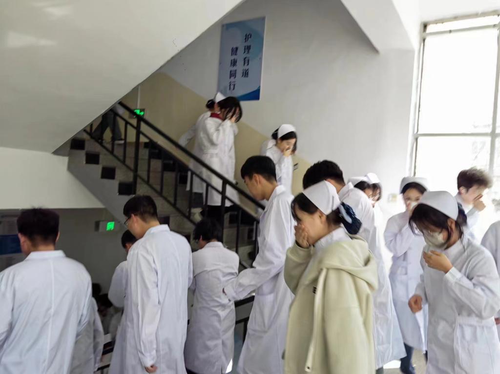 为了提高学生安全意识和应急响应能力,进一步强化护理系师生防火防震减灾意识,护理系教学科于3月28日下午在护理实验楼组织了2023级学生紧急避险安全疏散演练活动,制订了详细的演练方案,规定了演练信号、各班级疏散路线以及疏散后的集合地点,明确了师生职责。
