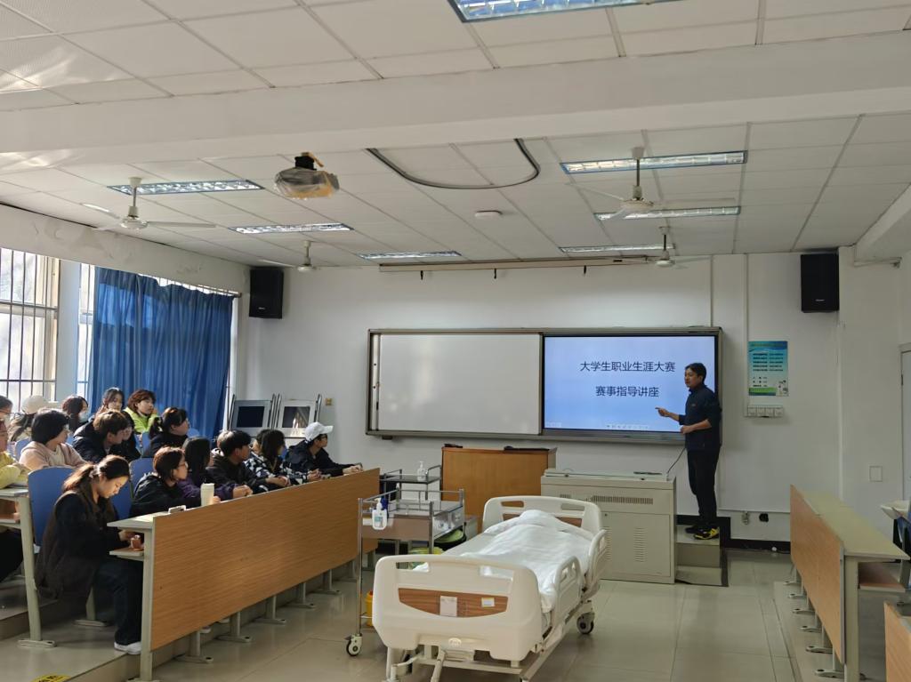 2024年11月15日,护理系在四号实验楼开展了大学生职业生涯规划赛事公益讲座活动。