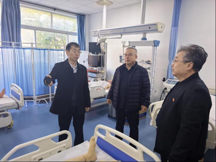 上午9时30分,纪连永副院长首先来到新食堂一楼护理示教室,详细了解智能化教学设备使用情况,现场观摩刘佳老师《健康评估》实验课教学。在4号实验楼,调研组重点考察了重症监护、老年照护等特色实训室,对护理系“教学做一体化”的培养模式给予充分肯定。随后听取了护理系的工作汇报。