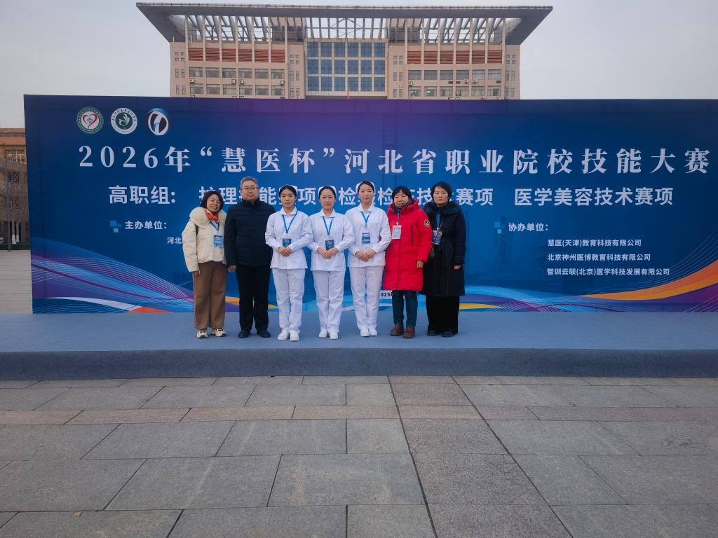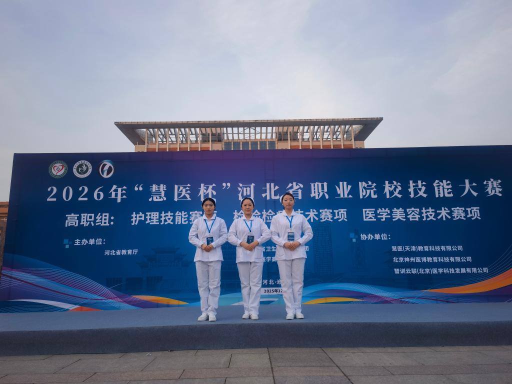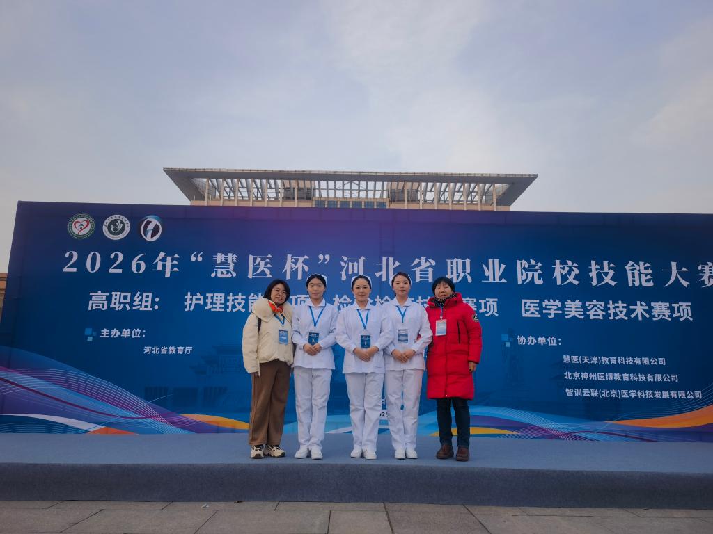 12月27日,在2026年“慧医杯”河北省职业院校技能大赛高职组护理技能赛项中,由护理系主任柴润国、教学科科长刘丽红带领的护理系代表队凭借扎实的专业功底、精湛的操作技能和出色的临场发挥,在激烈角逐中脱颖而出,荣获大赛一等奖,充分展现了护理系师生卓越的综合素质和奋发向上的精神风貌。