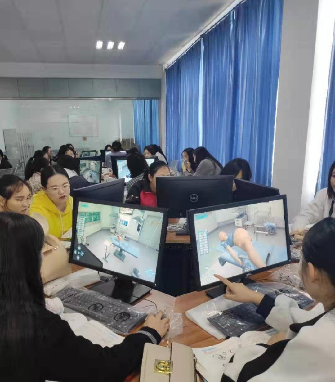 为了满足临床岗位对高质量产科护理(助产)人才的需求,突出实训教学效果,护理系于2018年助产虚拟仿真实训中心初步建成。该中心配置有1台教师机和30台学生机等硬件设施,包含产科护理虚拟现实交互系统、四部触诊、分娩机转、平产接生、人工流产手术等软件模块,教师已经开始运用该中心进行上述模块实施教学。在高仿真的虚拟环境下可以进行各项岗位常见操作步骤模拟训练,培养了学生专业实践能力。教学过程中,三维动画可以使学生们直观的了解所学内容,再对照实体教具,加深了学生对所学内容的理解,教师仅用提示、指导性语言就能轻松让学生领会所学内容,提高了教学效率,教学效果也比传统仅用教具进行教学有了明显改进,深受教师和学生喜爱。