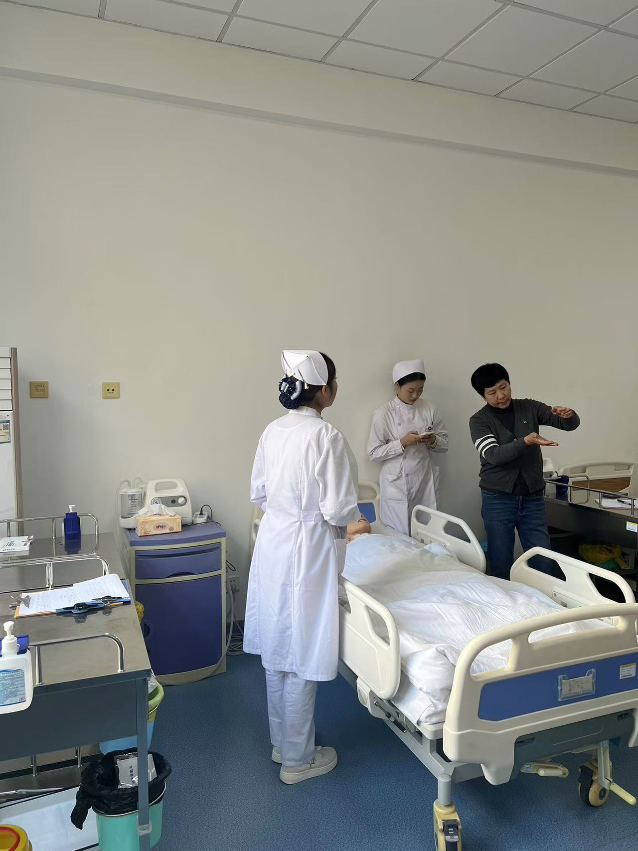 会后霍教授为护理技能大赛备赛选手进行了指导,以其丰富的裁判经验,为在场的师生们提供了宝贵的技术指导。不仅分享了临床护理中的实操技巧,还深入探讨了临床护理思维在大赛中的应用,