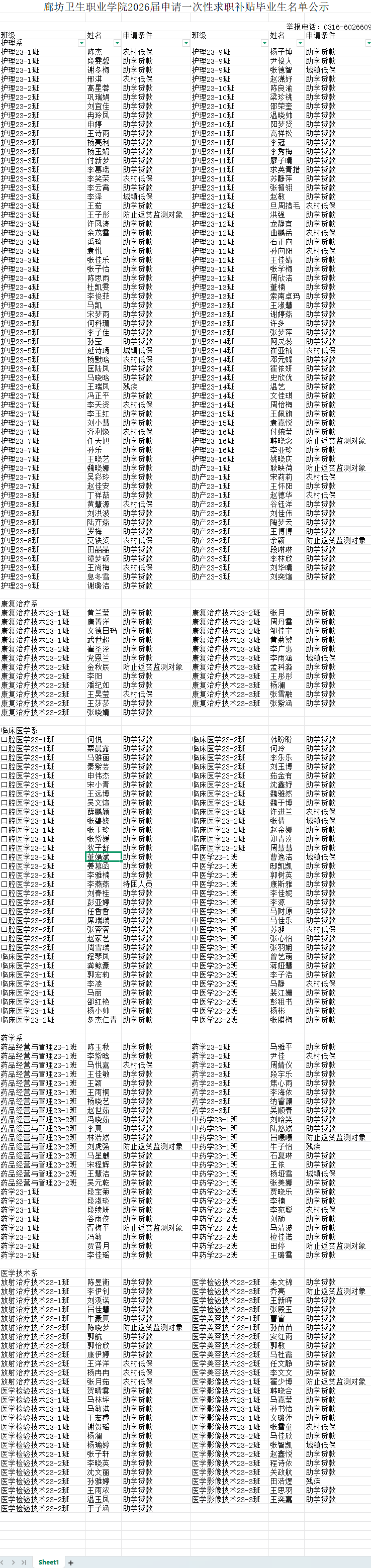 廊坊卫生职业学院2026届申请一次性求职补贴毕业生名单公示