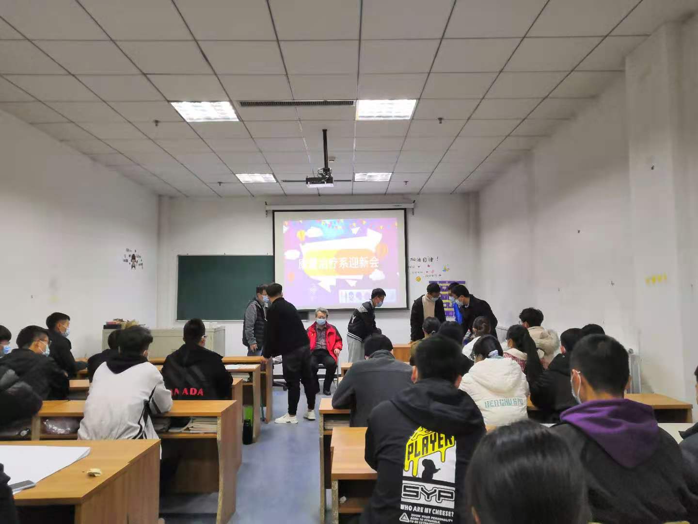 11月16日下午12点30分,康复治疗系在一号实验楼康复2020-2班教室召开了新生入学教育大会,系副主任程继勇、系办公室副主任张震、教学科副科长宋华松、学工科副科长陈刚以及董扬帆老师和班主任李梦雅老师出席了会议。