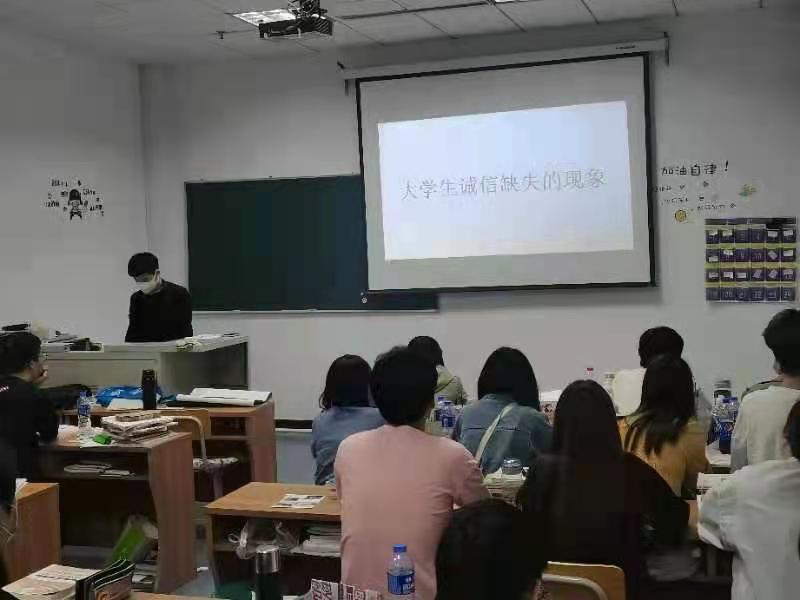 2021年6月2日,康复系各班举办了诚信教育主题班会活动,班会的主要内容围绕着以下三点:(一)结合本班学生的实际,指导学生制定符合自己,体现本班特色的承诺书;(二)收集现实生活中不诚信的例子,并对这些例子进行讨论,总结出不诚信的后果以及诚信的意义,知道诚信给我们带来哪些好处;(三)在班会的整个过程中,大部分同学都认真地观看并能积极发言,参与其中的话题讨论。
