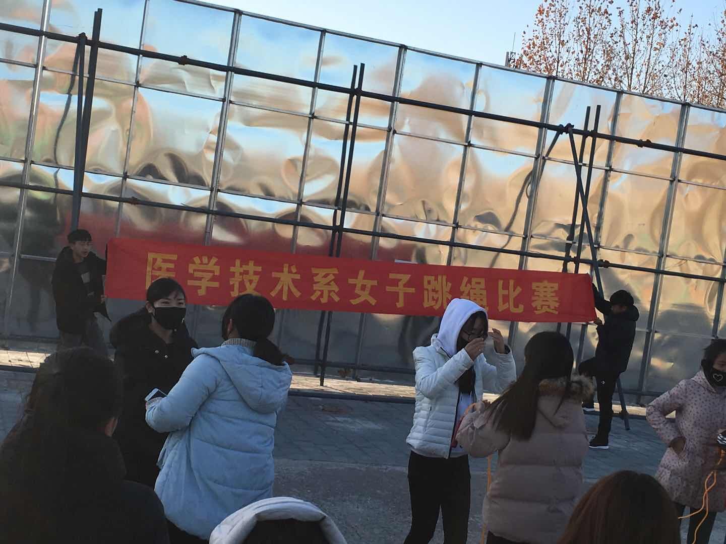 为提高学生身体素质,丰富校园文化生活,11月28、29日康复治疗系、医学技术系联合举办“一分钟跳绳”比赛。本次比赛在老师的协助下由两系学生会组织进行,每个班级选拔5人参加比赛。为了取得更好的成绩,各班同学在赛前积极备战。