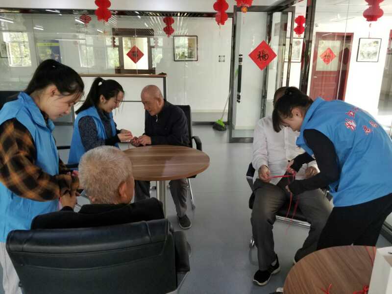 今天,同学们给老人们带来了康复治疗师的一大法宝——作业疗法,可以很好的锻炼老人的各方面能力。比如可以提高关节活动范Χ、协调性及精细运动,提高记忆力、注意力、判断力,对心理及社交方面也会起到很好的促进作用。本次作业疗法的项目是指导老人们编织红手链。有的老人十分聪明,手也灵活,看两遍就能亲自编织,这正达到了我们把作业疗法带到养老院的初心和目的,这鲜红精致的手链就好似康复系志愿者们对老人的热情。