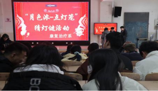 为丰富学生校园文化生活,弘扬民族优秀传统文化,2024年2月29日下午两点,康复治疗系在阶梯教室四举行 “月色浓—点灯笼之猜灯谜”活动。