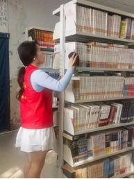 在图书馆老师的指导下,学生们迅速投入到了各项工作中。他们认真整理书架,帮助老师们将书籍摆放得井然有序;仔细擦拭书架和桌椅,让图书馆环境更加整洁宜人。在志愿服务过程中,康复治疗系的学生们展现出了极高的专业素养和团队协作精神。他们以认真负责的态度,为读者提供了更好的借阅体验。