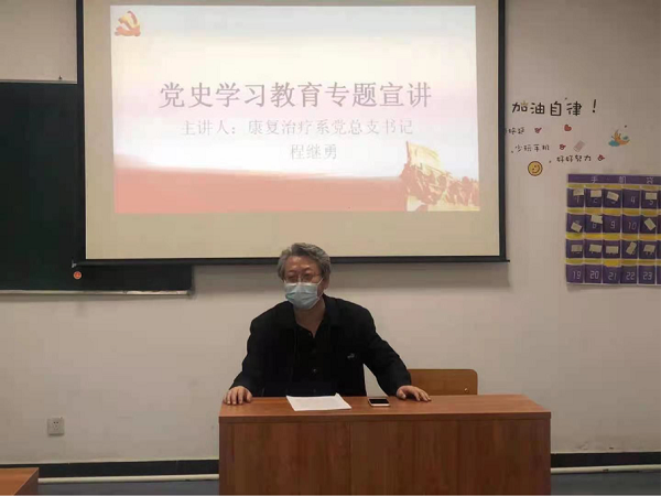 在4月28日午,在康复治疗系党支部书记程继勇的带领下,进行了党史学习教育主题宣讲。