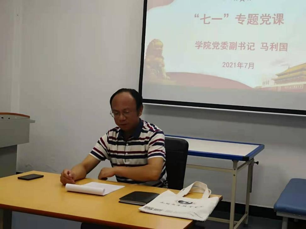 按照学院党委党史学习教育工作安排,2021年7月6日9:00整,学院党委副书记马利国同志在1号实验楼为康复系和学管中心党员讲专题党课。