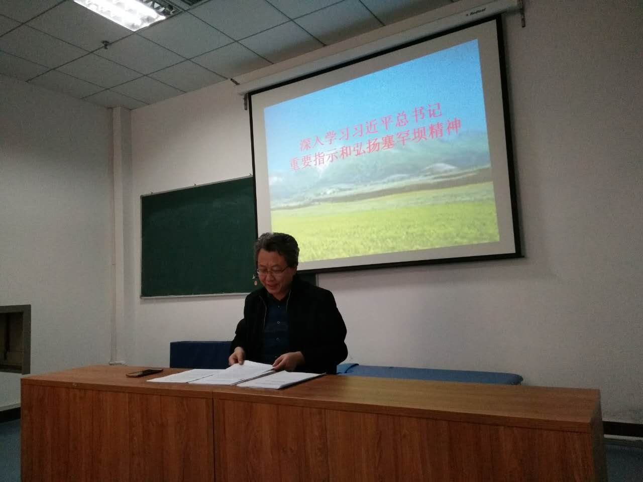 2017年10月31日,康复治疗系和医学技术系党支部在康复多媒体教室共同组织深入学习习近平总书记重要指示和塞罕坝精神专题学习活动。
