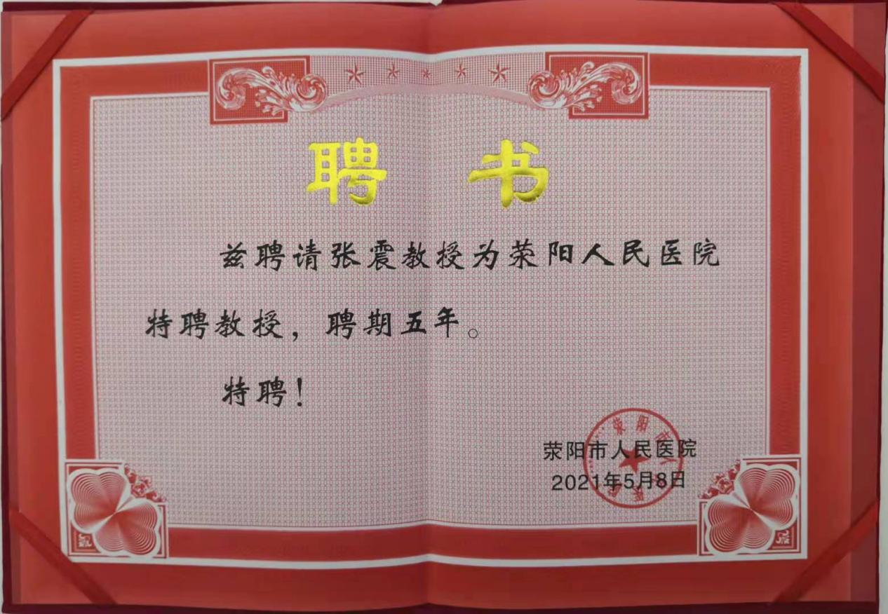 张震老师荣获荥阳市人民医院特聘教授殊荣