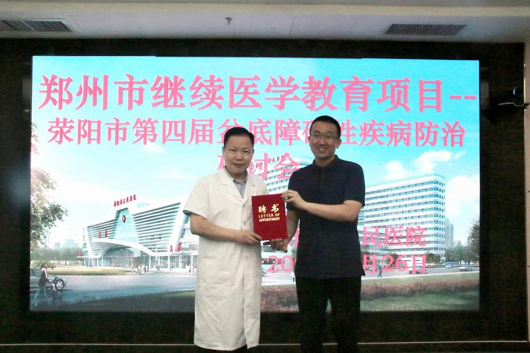 会议开始前,荥阳市人民医院副院长李广明致辞,他希望通过各位专家的专题讲座,使全市的医务人员学习到更多新的理论、新的知识。并特意为我院康复治疗系张震老师举行了郑重的聘书授予仪式!
