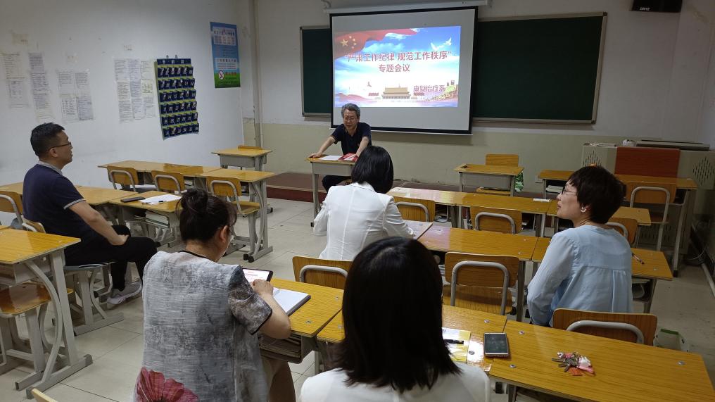 5月27日下午,康复治疗系在1号实验¥康复19-2班教室召开学习宣传贯彻习近平总书记重要指示和全面职业教育大会精神研讨会。会议由康复系党总支书记程继勇主持,系全体老师参加。