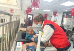 在专业老师路莹的指导下,为老人测量血压,了解健康状况;做康复评定,讲解如何降低跌倒风险;为老人推拿按摩,改善肌肉关节状态。