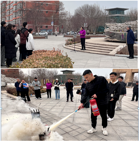 演练按照班级召开消防安全培训班会——模拟火情——紧急疏散——集合点评四个环节进行。随着急促的火警信号响起,消防应急演练正式拉开帷幕。辅导员和应急疏散小组成员迅速到位,在楼道和安全出口指挥学生捂住口鼻、弯腰俯身,沿着就近楼梯口有序、快速撤离到指定安全地点。整个演练过程井然有序、快速高效,未发生人员拥挤、踩踏等情况。消防疏散演习结束后,李红敏工程师对此次学生疏散演练进行专业点评,对可能发生的安全风险进行讲评,为学生讲述灭火器材使用方法并当面演示,指导学生拿起灭火器对现场模拟火点进行灭火。