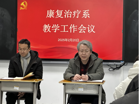 2025年2月20日,康复系工作会议在一号实验楼107室顺利召开。此次会议由康复系副主任张震主持,康复系书记程继勇对本系各项工作进行了统筹安排和部署,全系教职工共同参与,共商系部发展大计。