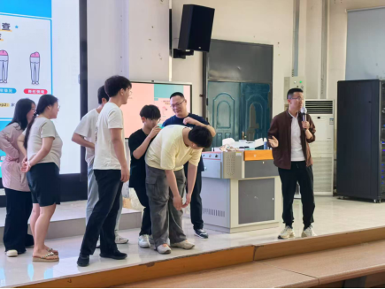 培训伊始,张院长凭借丰富的临床经验和扎实的专业知识,深入浅出地讲解了脊柱侧弯的发病机制,从青少年特发性脊柱侧弯的遗传因素,到因长期不良姿势、肌肉力量不均衡引发的后天性脊柱侧弯,为同学们梳理出清晰的病因脉络。同时,详细阐述了脊柱侧弯对青少年身体发育、心肺功能及心理健康的潜在危害,让大家深刻认识到早筛查、早干预的重要性。在实操环节,张院长积极邀请台下的同学上台做模特,亲自示范,指导同学们如何准确地进行手法操作,纠正大家的错误动作。同学们认真学习,积极提问,现场互动热烈。
