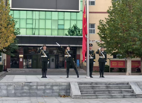 在系总支书记程继勇的主持下,升旗仪式庄严举行。全体师生整齐列队、肃立注目,伴随着雄壮有力的音乐声,全体成员齐唱国歌,注视着五星红旗冉冉升起,爱国情怀在每个人心中激荡。