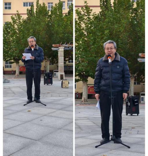 仪式后,秦维城书记以中国人民解放军空军成立76周年为契机,为师生上了一堂史料翔实、精彩纷呈的“国旗下的思政课”,阐述了中国人民解放军空军在新中国成立、发展、强大等重大事件中的使命担当与空军精神。秦书记慷慨激昂的演讲,表达了对五星红旗的敬仰及对中国人民解放军的赞扬之情,激发了全体师生的爱国热情,鼓励青年学生学好专业本领,为中国事业、祖国和人民健康需求奉献青春智慧。