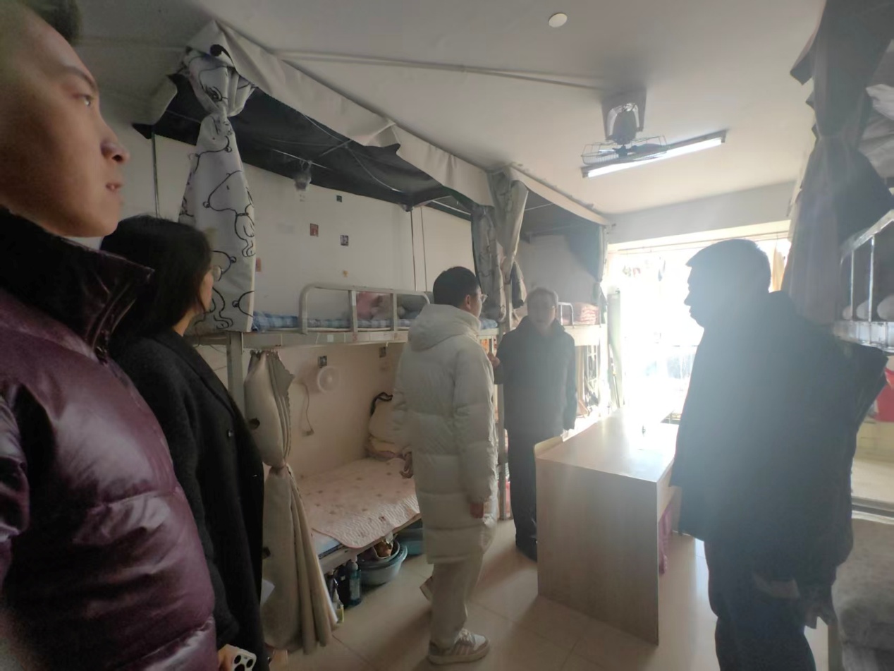 检查过程中,程继勇一行详细查看了各宿舍的安全与卫生状况,并与当值宿管老师进行了现场沟通,嘱咐其务必加强日常巡查,重点关注用电安全与禁烟管理,共同筑牢宿舍安全防线。此次检查整体卫生状况良好,但仍发现两方面突出问题:一是部分宿舍存在插座未断电情况,二是少数宿舍有吸烟痕迹。