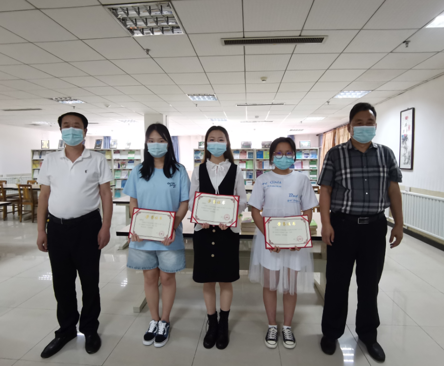 接下来由王院长、马馆长为获奖同学颁发荣誉证书及奖品,王院长对参加阅读推广获奖的同学给予了充分的肯定并鼓励同学们以后要多参加这样的活动。