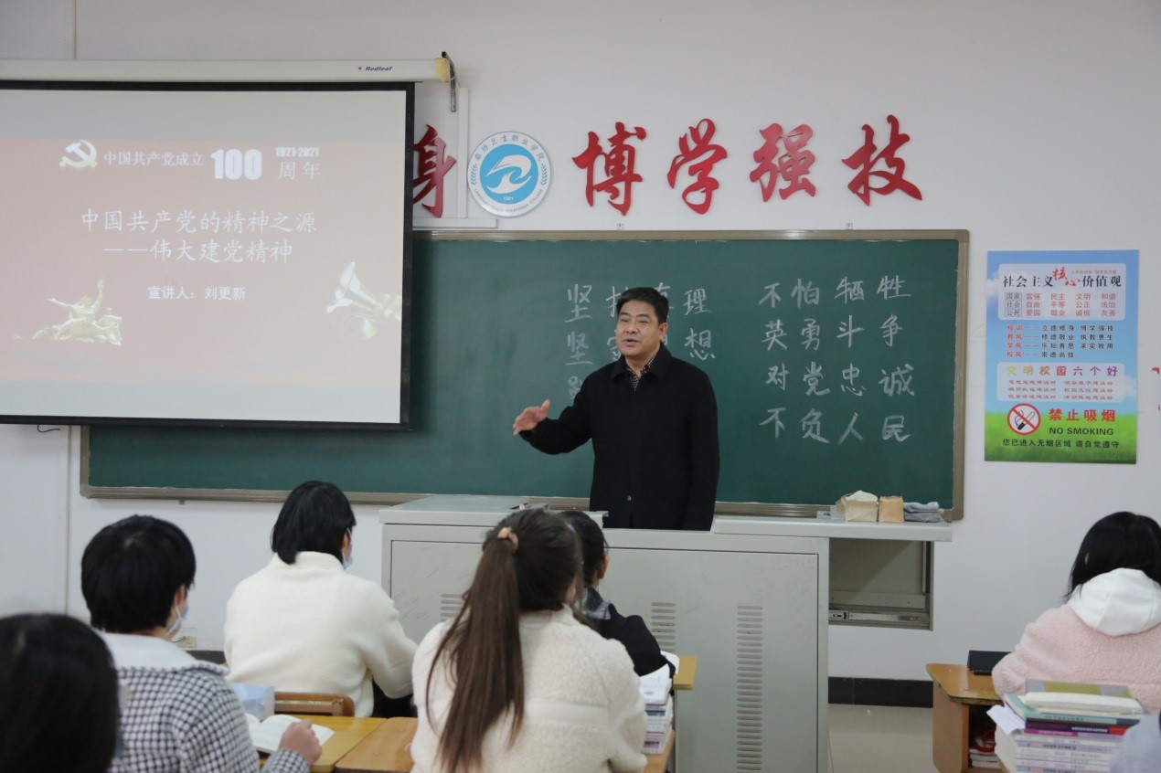 2021年11月5日,我院党委副书记、院长刘更新同志深入口腔21级4班、护理21级8班,为青年大学生宣讲中共中央总书记习近平在纪念中国共产党成立100周年大会上的重要讲话精神,刘院长宣讲的题目是《伟大建党精神 中国共产党的精神之源》。