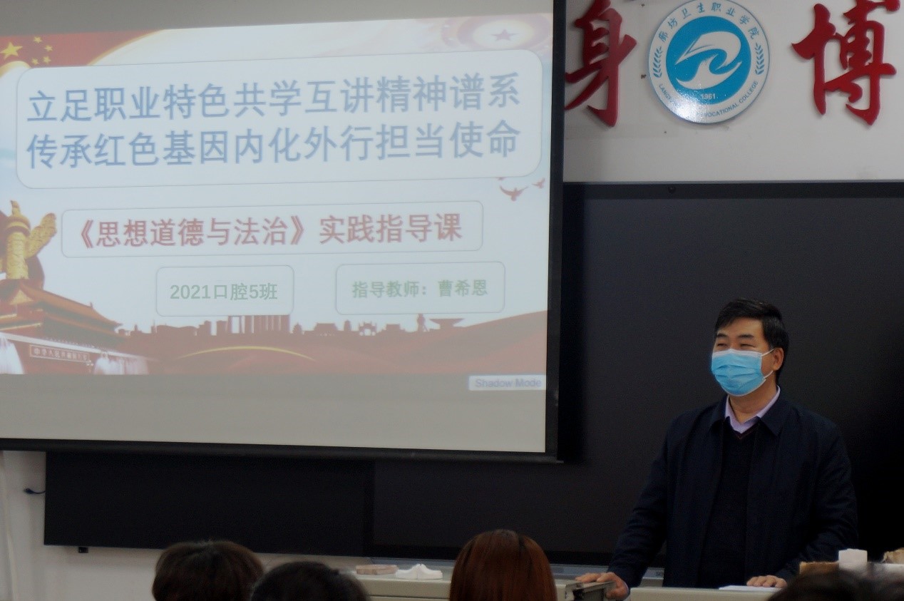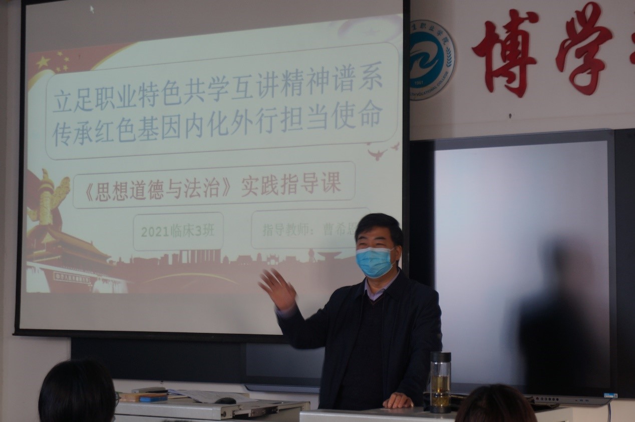 2021年11月8日,我院党委书记曹希恩同志深入到2021级临床3班、2021级口腔5班讲思政课,此次的讲授内容是《思想道德与法治》实践教学部分的精神谱系内容的实践指导课,曹书记做了题为《继承和弘扬塞罕坝精神》的课程讲授,从塞罕坝林场的时代背景、建设历程、塞罕坝精神实质与内涵到传承和弘扬塞罕坝精神,向同学们详细解读了“塞罕坝精神”。