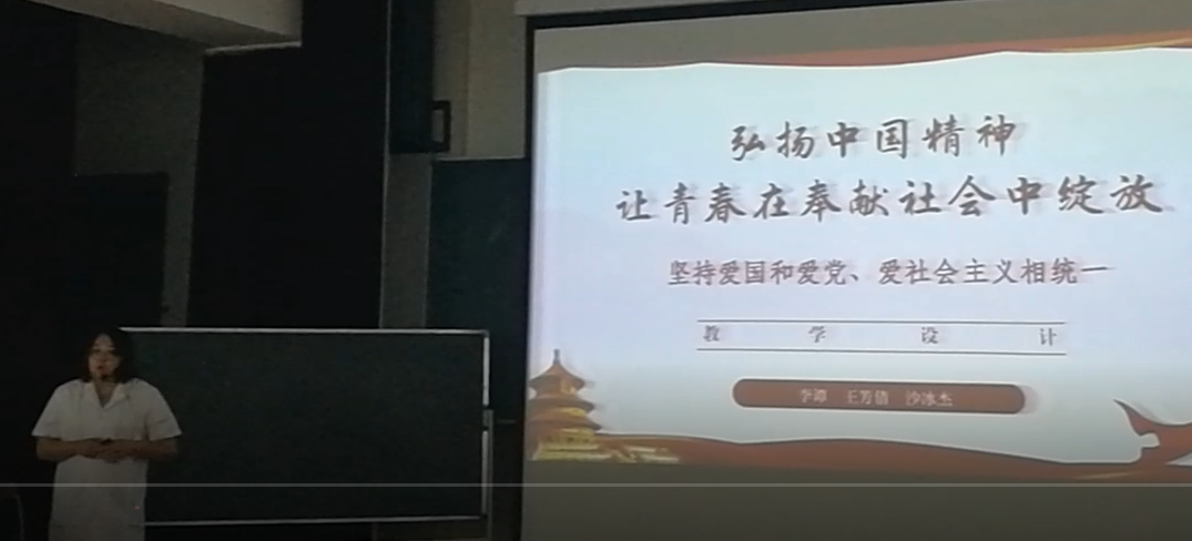 2021年5月30日,思政部教师李谭、王芳倩、沙冰杰组成的教学团队,参赛作品为《弘扬中国精神 让青春在奉献社会中绽放》教学案例,现场教学演示部分为其中的《坚持爱国和爱党、爱社会主义相统一》版块,经过三人齐心协力、努力拼搏,在时间紧任务重的情况下,最终在廊坊卫生职业学院教师教学能力大赛上获得三等奖。虽然受到客观因素的影响,但老师们面对现实,认识到了自身的不足,努力向更高的目标迈进。