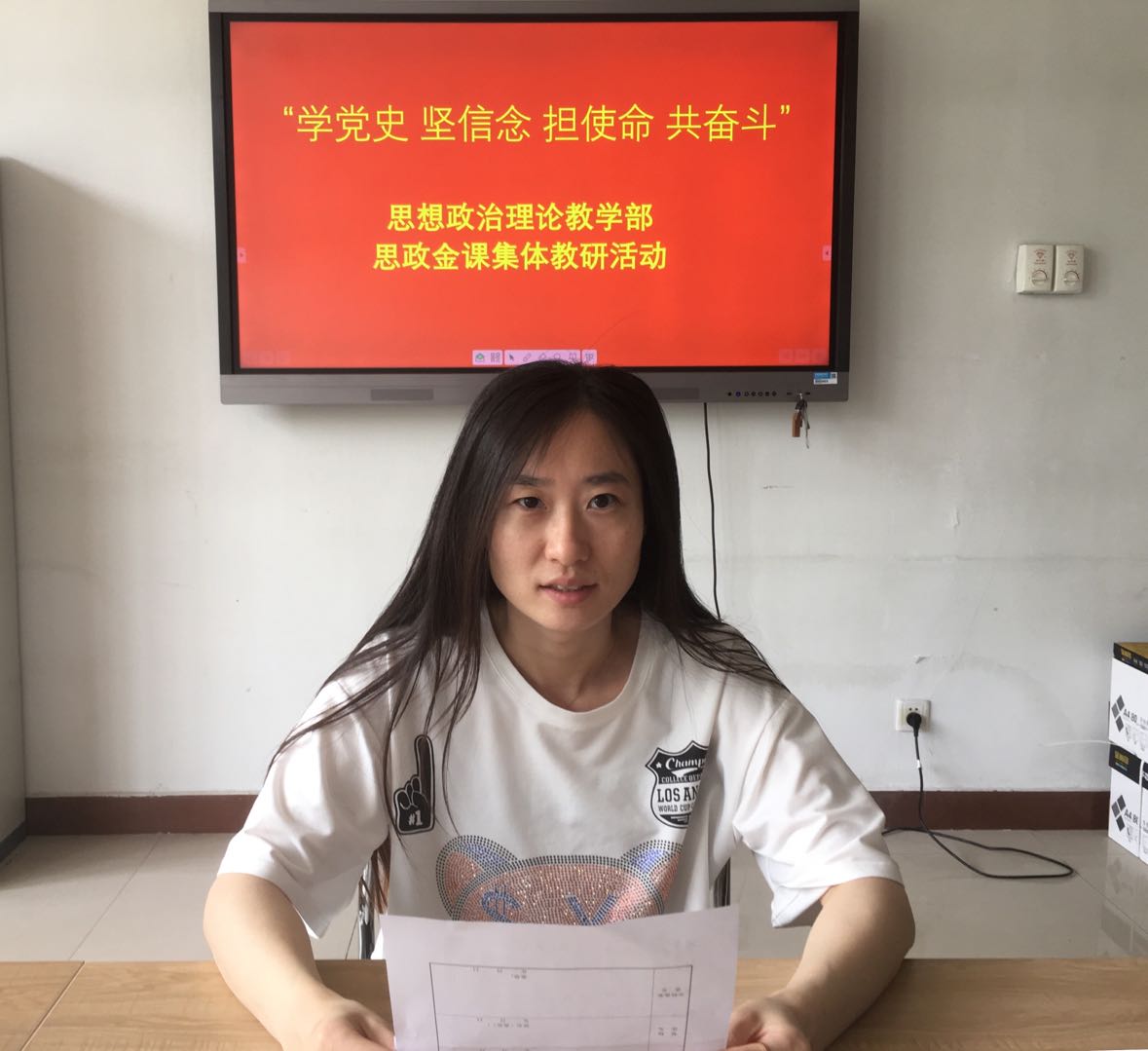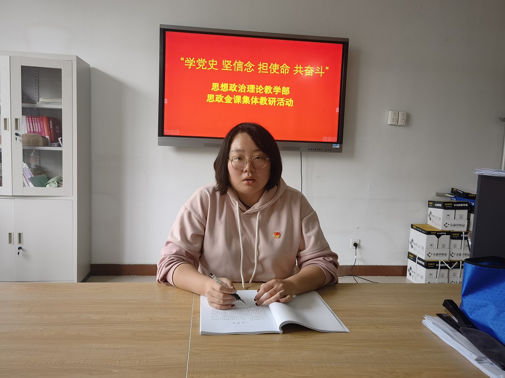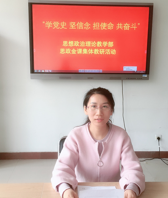 为了贯彻落实习近平总书记在党史学习教育动员大会重要讲话精神,4月23日,思想政治理论教学部贯彻落实学院党委的安排部署,组织教师在我部资料室召开了题为《学党史 坚信念 担使命 共奋斗》的思政实践教学第二次集体教研活动,努力打造思政金课,着力培育时代新人。此次集体教研活动继续以《毛泽东思想和中国特色社会主义理论体系概论》课程的实践教学活动为依托,设计了题为《追寻那些年的红色记忆》讲党史故事、文艺汇演活动。回顾中国共产党一百年发展历史,我部教师选择13个重大时间节点和重要党史事件,用艺术形式呈现。十二名任课教师分别选取其中一个时间节点,在所任课班级中发布实践教学任务;各班学生以小组形式承接实践教学任务,由学生自己确定艺术表现形式,最终由任课教师选拔推荐参加汇演的班级小组。由十二个小组以(歌舞、诗朗诵、演讲、舞台剧)等艺术表现形式分别展现党史发展历程中的重要时间节点和重大历史事件,呈现中国共产党辉煌一百年的发展历史。