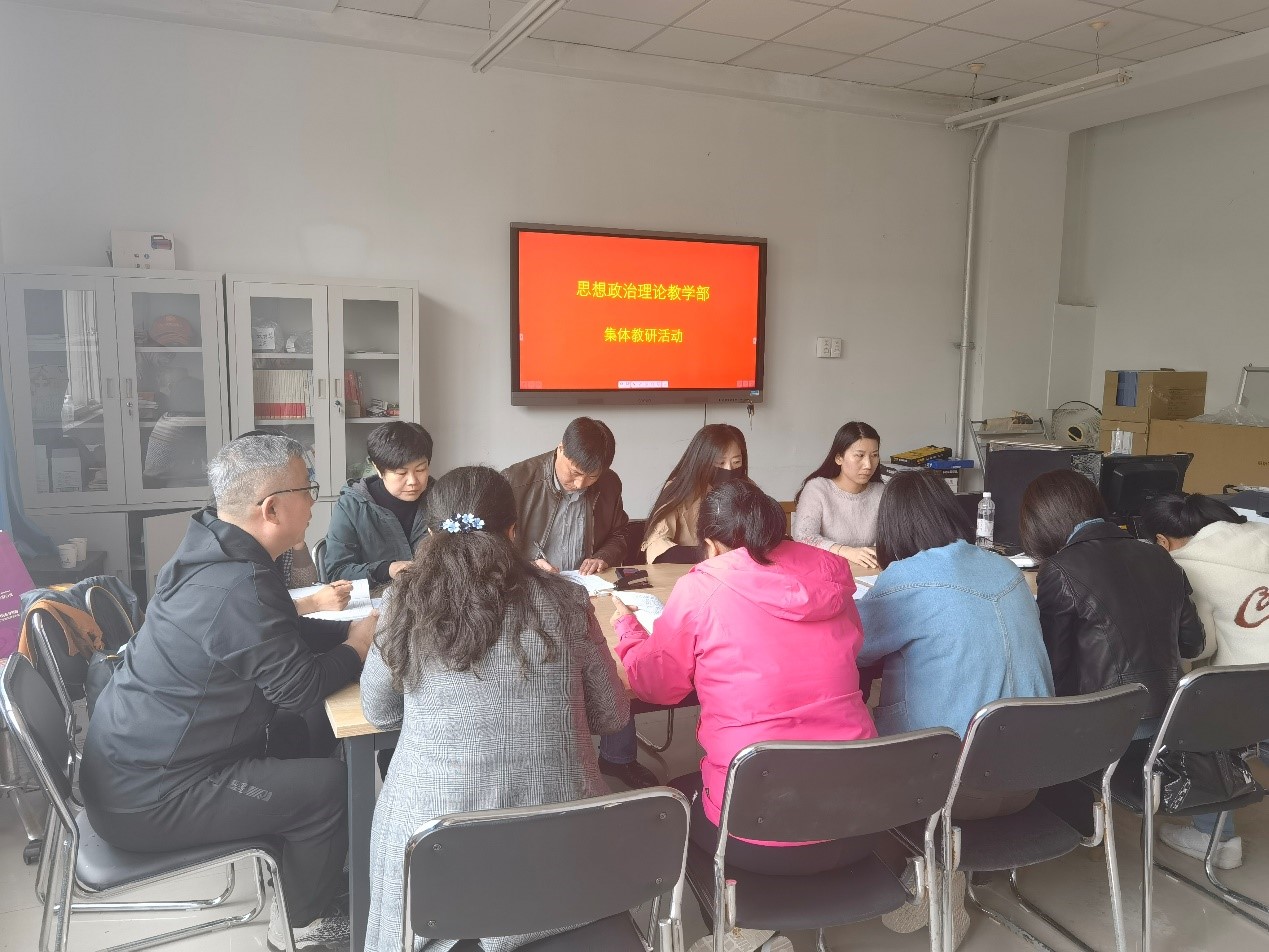 此次教研活动的主要内容是针对《毛泽东思想和中国特色社会主义理论体系概论》课程的实践教学活动进行了研究讨论、安排部署。思政部教学工作严格落实国家教育部、省教育厅安排部署,按照学院党委相关要求,对实践教学工作展开了一场研究讨论会,大家各抒己见,纷纷为做好本学期实践教学建言献策。最终决定,对一年级学生的思政课程安排了《追寻那个年代的红色记忆----学党史 坚信念 担使命 共奋斗》实践活动。