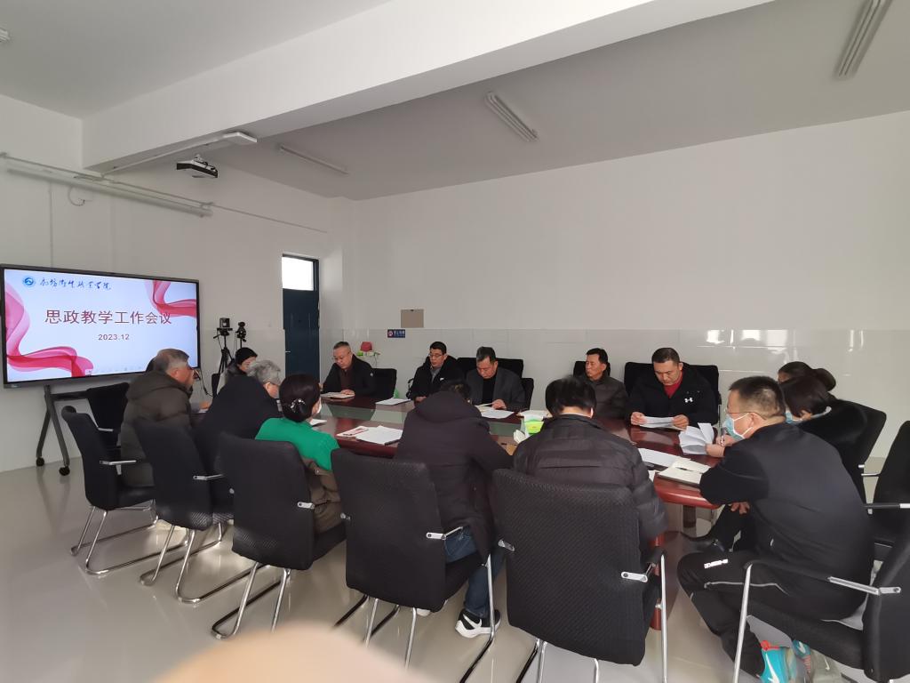 党委委员、副院长王泽泉对2023年度各部门的思政教育工作给予肯定,希望各部门再接再厉,再创新功。王院长对思政部的工作提出指导性意见:要在课程建设方面下工夫,继续完善已经录制的两门在线精品课;持续推进思政教师队伍建设,让中青年教师快速成长起来,在院内成为标杆,在院外有一定的影响力;对省思政创新团队及示范课堂的相关评估工作要持续完善相关材料;做好迎接听课评估准备;优化配齐思政教师,不断提升教学质量,为学院发展做出应有的贡献。