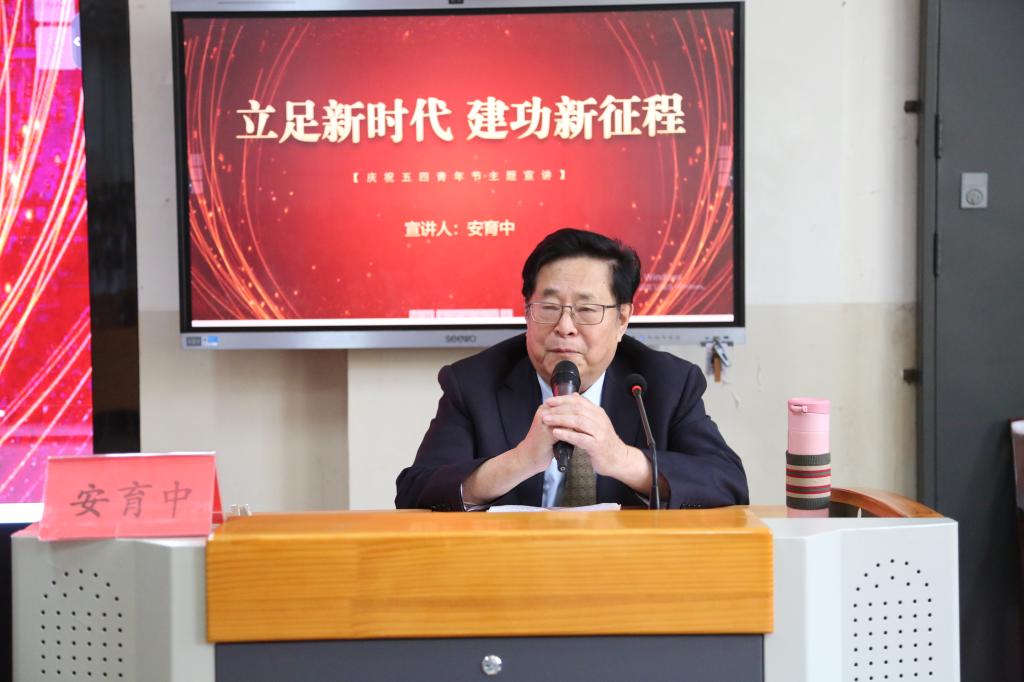 安育中教授的讲座以朗诵毛泽东语录中《世界是你们的》开篇,围绕“五四”精神,从回顾“五四”以来中国革命的发展历程,重温习近平总书记对青年的寄语以及做新时代的好青年三个方面展开宣讲。