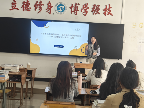 为进一步提升专兼职教师教学水平,强化思政课教学实效,4月29日中午,思想政治理论教学部组织开展教师教学能力提升专题培训。本次培训特邀河北省青年思想政治教师授课大赛一等奖获得者周璐作经验分享,思政部全体专兼职教师参与学习,教务处王冬杰处长出席培训会。