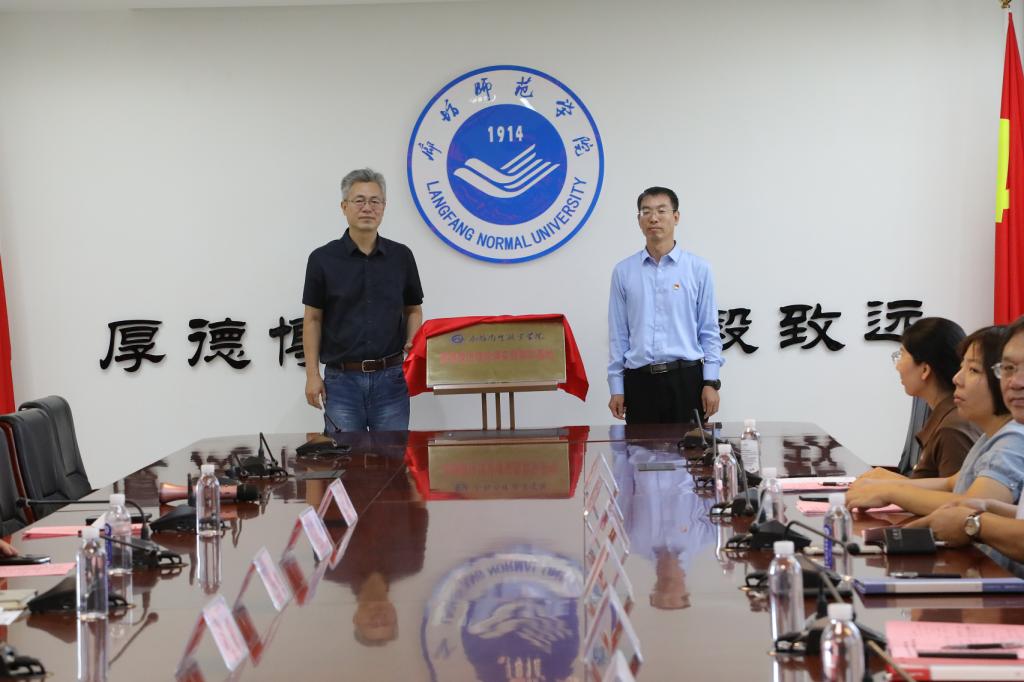 在与会人员的共同见证下,廊坊师范学院国际教育交流中心主任赵文华与思想政治理论教学部主任付立侠共同签署了共建协议。纪连永副院长与张增良副校长共同为“思想政治理论课实践教学基地”揭牌。