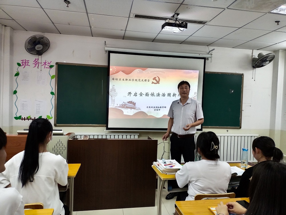 2021年5月19日,我院在2020级临床医学8班举办了一场题为《开启全面依法治国新时代》的党史课堂讲座,旨在让同学们进一步学习习近平依法治国思想,了解依法治国的重要意义以及当代大学生的担当与使命。讲座由思想政治理论教学部苗冠军老师主讲。