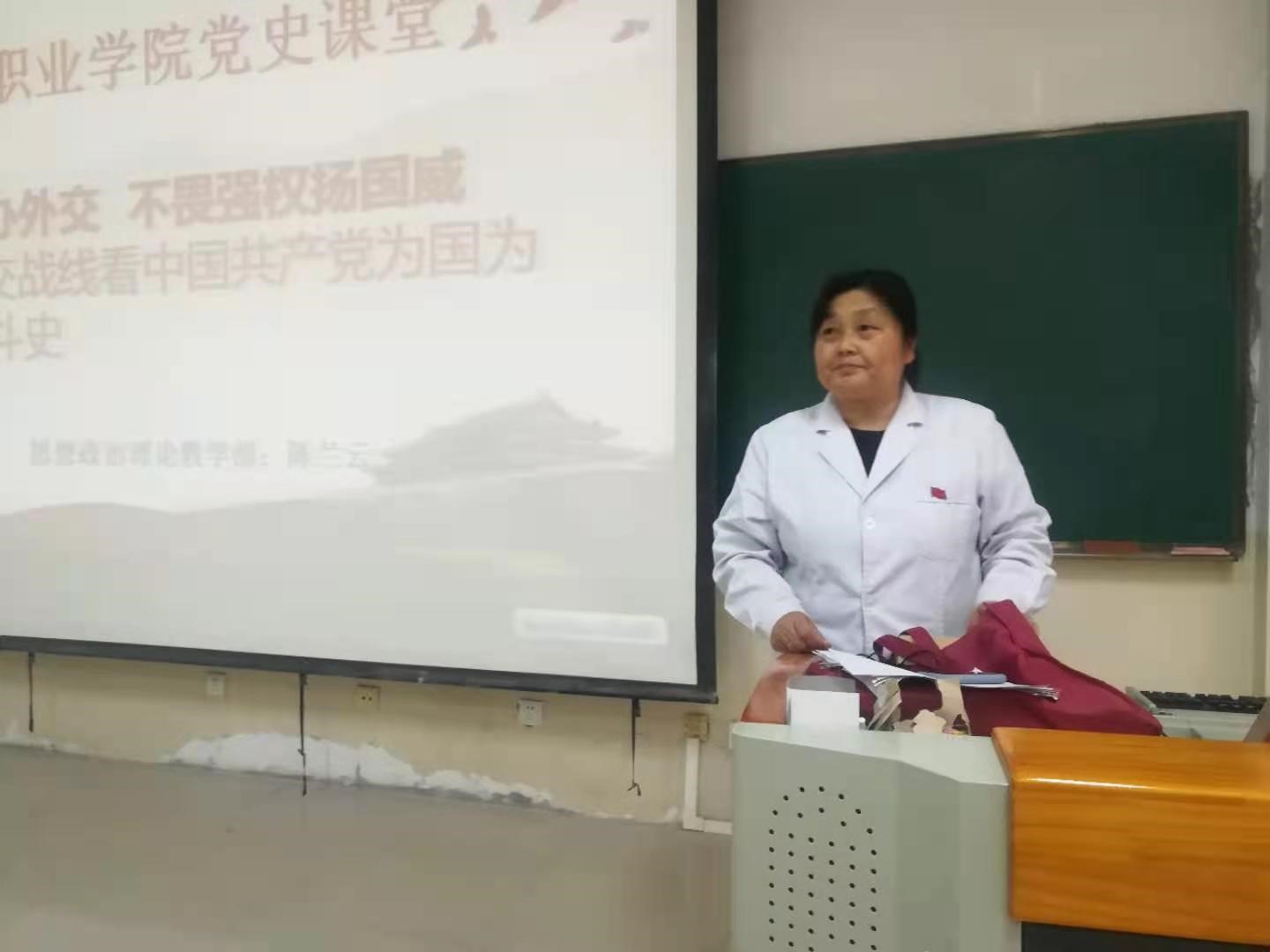 4月26日,在我院阶梯教室举办了一场题为《独立自主办外交 不畏强权扬国威——从外交战线看中国共产党为国为民的百年奋斗史》的党史课堂讲座,由思想政治理论教学部教研室主任陈兰云教授主讲。