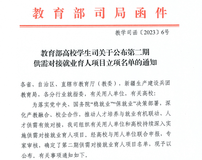 近日,接教育部司局函件教学司函[2023]6号的通知,由我院王泽泉院长参与指导,思政部医学伦理法律教研室主任沙冰杰主持申报,王冬杰、周璐、刘雅老师参与研究的教育部高校学生司关于供需对接就业育人项目获批立项,项目编号:20230110750。
