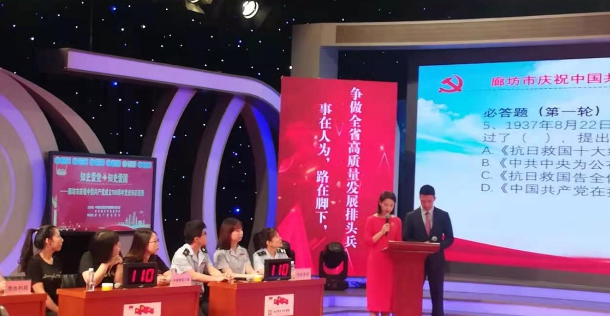 6月8日,思政部教师王芳倩、周璐与一名管道局小学教师组成的团队代表廊坊市教育工委参加廊坊市党史知识竞赛初赛中,获得小组第二,进入复赛。