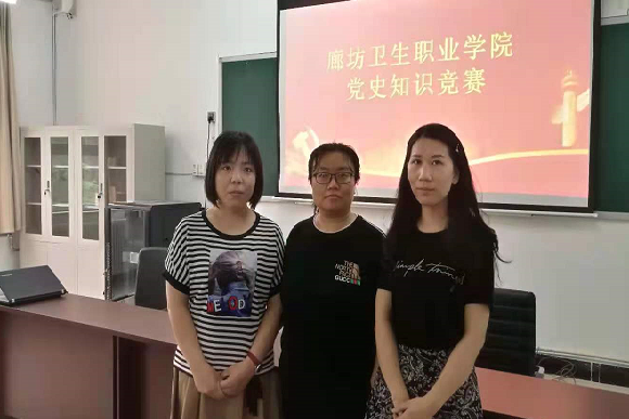 2021年6月7日中午,在学院党史办组织的党史知识决赛中,以王芳倩、曹建芝、周璐三名教师组成的思政部代表队,荣获团体第一名的好成绩!在此,表示热烈祝贺,并希望她们积极备战,在市级比赛中取得佳绩!