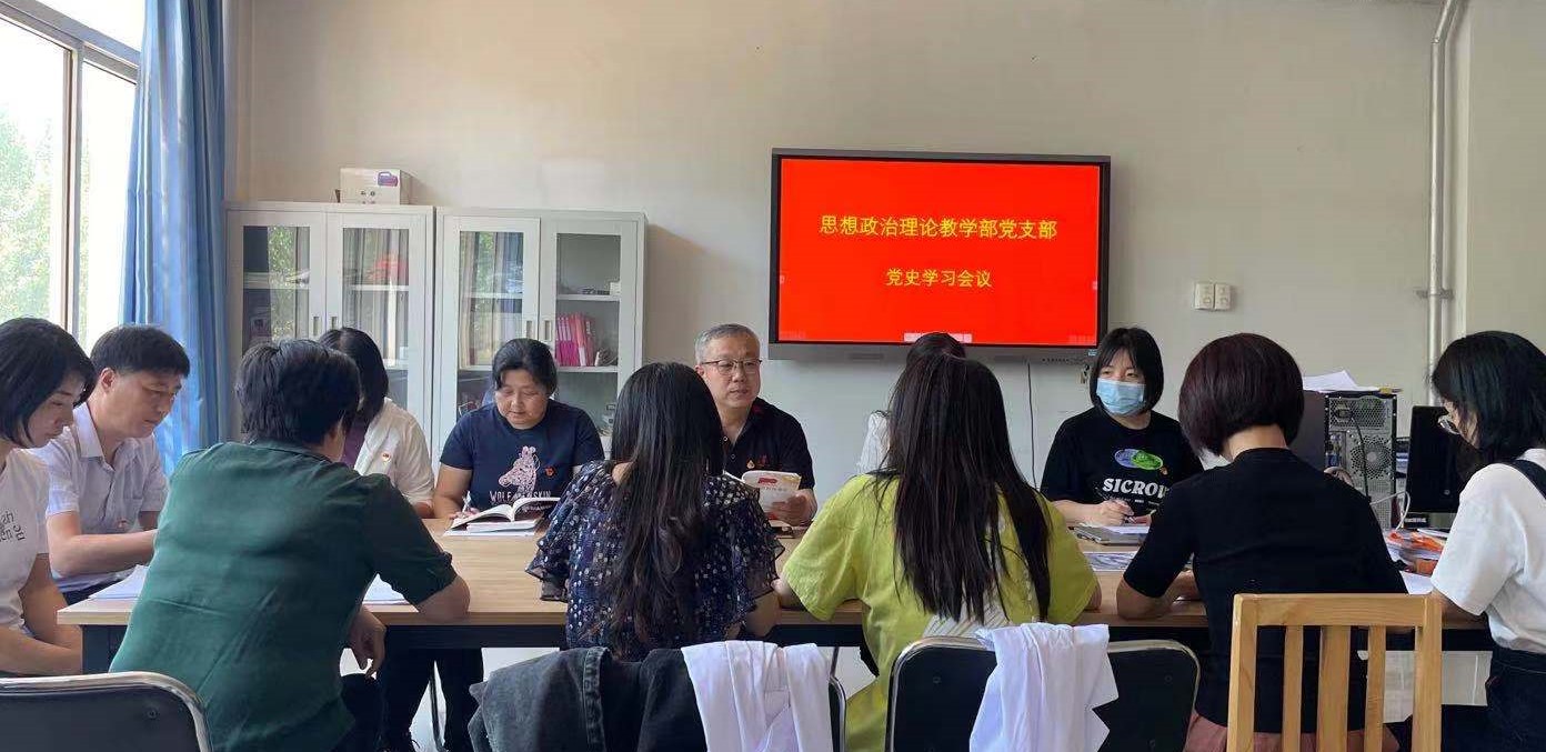 6月3日,思政部党支部组织党员开展“学党史坚信念 担使命 共奋斗”主题党日活动。思政部党支部书记王冬杰领读“四史”必读篇目并主持学习交流会。会上,中青年党员、入党积极分子积极发言,就党史主题教育开展以来所学所获进行交流,在百年党史中汲取精神力量,坚定理想信念,扎实推进教育教学工作。